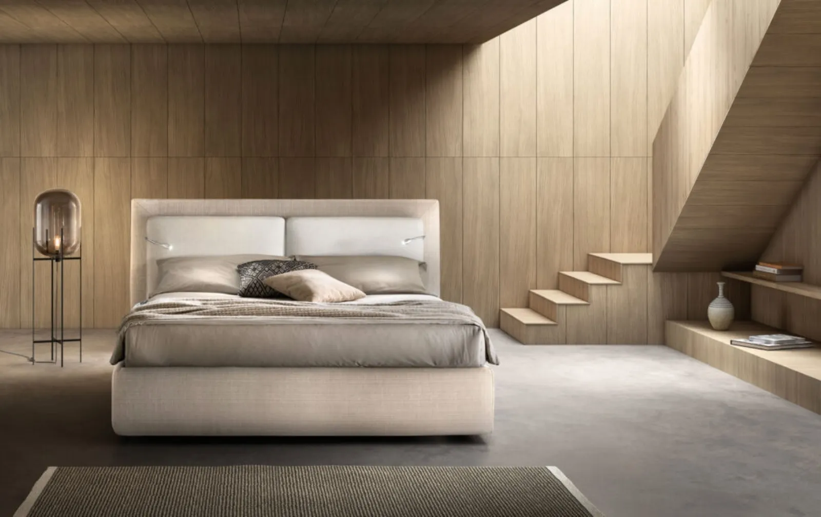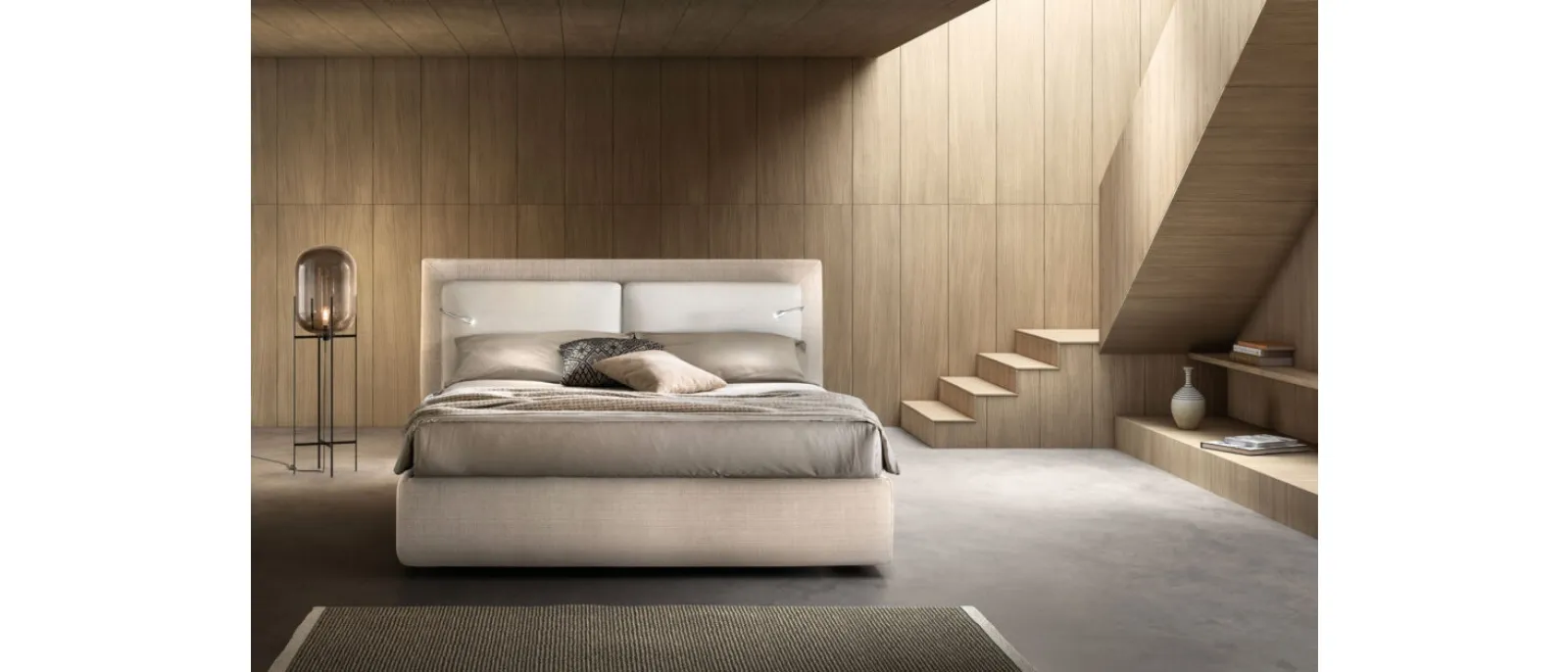 The Flux relaxation bed by Bside optimizes the room ensuring the best rest and an accurate aesthetic research