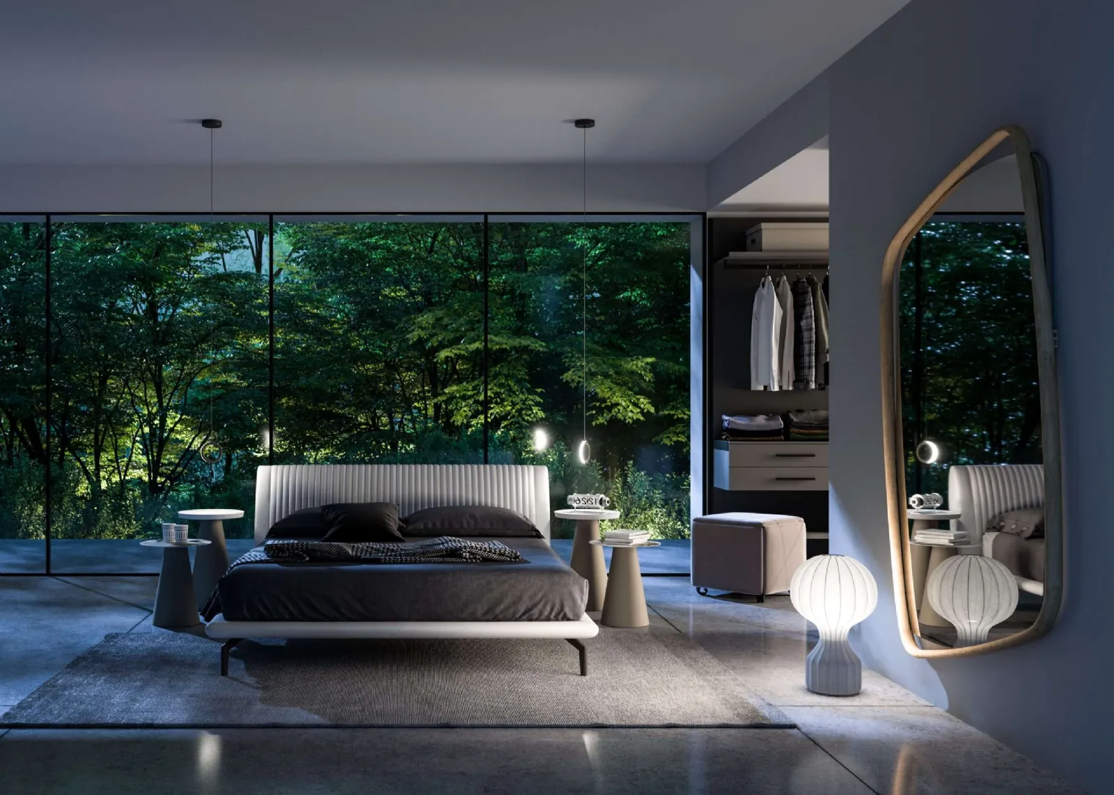 With Ozzio's leather double beds, including the model in the photograph, you will have a beautiful and very functional piece of furniture in your bedroom. With us, you can create the bedroom just as you have always imagined it, beautiful and of great quality, complete with a wide range of designer accessories. Ozzio's Globo leather bed: ideal for design spaces, it is a solution designed to ensure the best rest every night. The renowned brand is a specialist in good sleep: a wide range of double upholstered models, also made of leather, awaits you in our store.