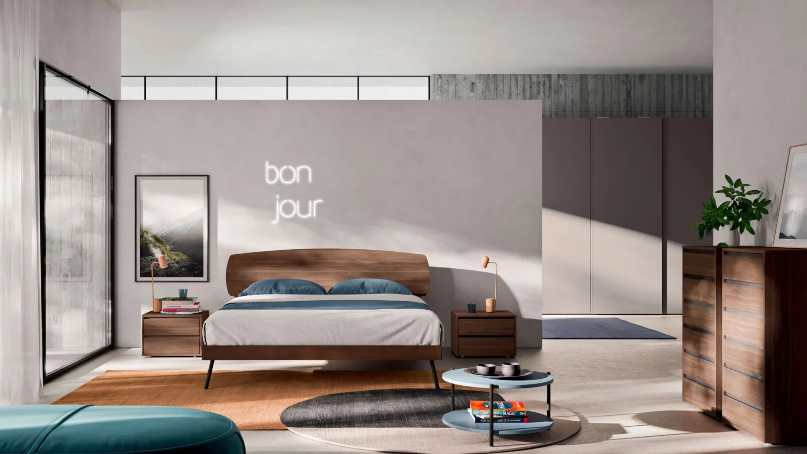 When purchasing the right type of bed, carefully consider its dimensions, materials, shape, and style in relation to the rest of the furnishings. If you're looking for a melamine solution, the model visible in the photo features durable materials and bold shapes that invite you to enjoy a deep and restorative rest. The double beds with headboards from the brand, a specialist in the creation of Home Furnishings for the bedroom, are designed to be paired with furniture and accessories of all kinds, such as wardrobes and bedside tables, bedside lamps, and floor lamps. Choose tones and finishes and create your furniture concept in the bedroom, designing it just as you had dreamed.