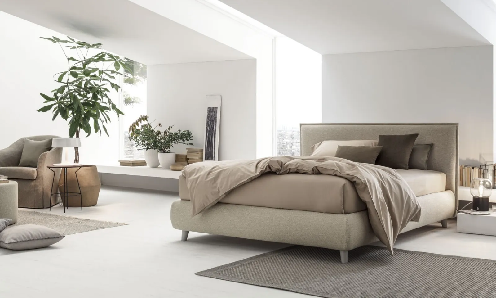 The durability of the finishes and great comfort are the aspects that characterize all the products of the brand, including the fabric bed in the photo. If you want to furnish modern spaces, we are waiting for you to illustrate our Home Furniture design to create your customized concept. Discover in our showroom a wide range of storage beds, furniture, and accessories for the bedroom from the best brands. With the Pascal padded fabric bed by V&Nice of the well-known and renowned brand, a specialist in the industry, you can enhance your bedroom ensuring comfort, practicality, and a clean design.