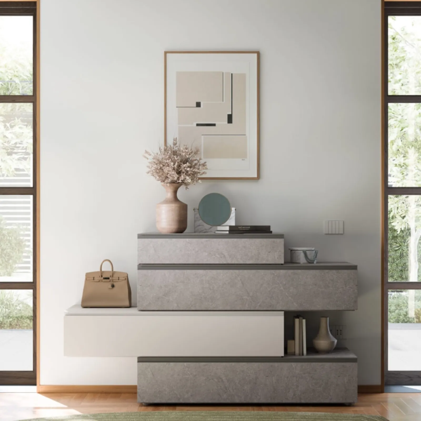 Optimize your interiors by choosing compositions of matching elements or recreate desired style and color combinations thanks to the furniture and accessories catalog for the bedroom that we offer, like the melamine model shown in the photo, also customizable. Contact us and get information about our furnishing solutions and furnish the bedroom as you imagined. The bedroom also includes bedside tables: strategic storage furniture that allows you to organize objects and have surfaces to support for various uses.