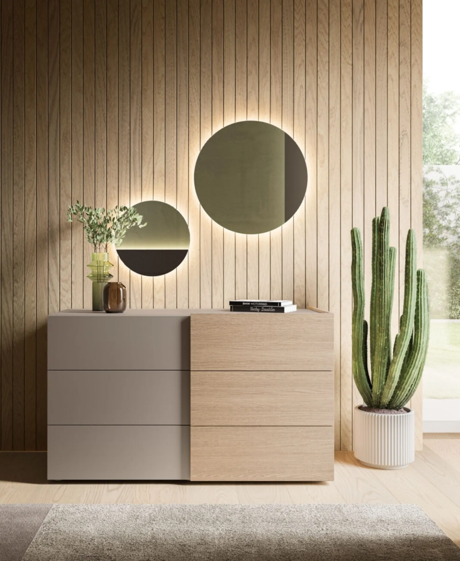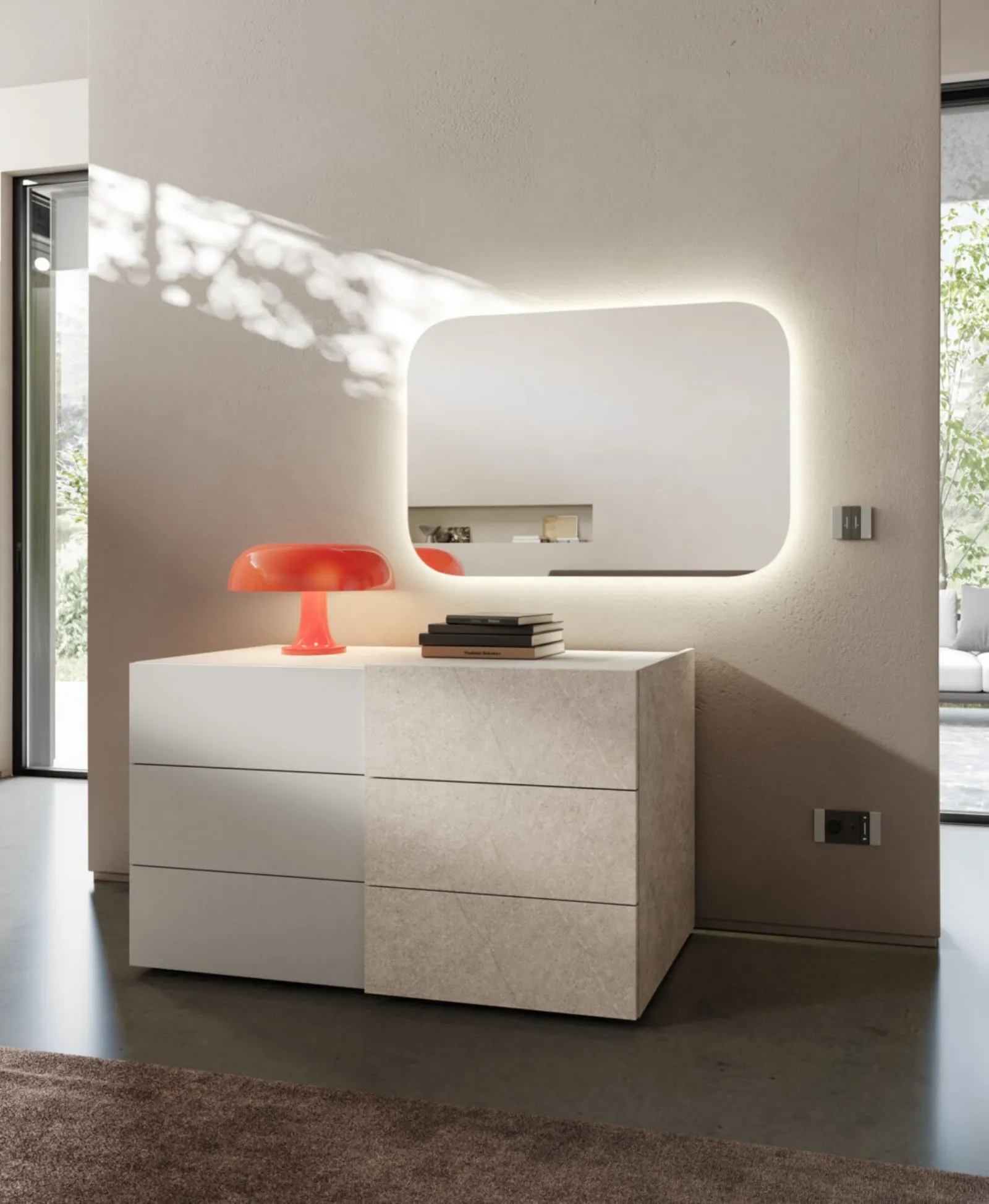 Thanks to these furnishing objects, we are able to arrange small necessary items or display accessories. Bedside tables are some of the essential furniture and accessory elements in every bedroom, as they offer the opportunity to complete the spaces making the most of every corner. Orme's Double dresser: it is a versatile type of container capable of providing practicality and great aesthetic value in modern spaces. The melamine proposals by the Orme brand, a leader in the production of wardrobes and dressers, allow for creating custom combinations or even having features in clear and intentional contrast with the other furniture pieces.