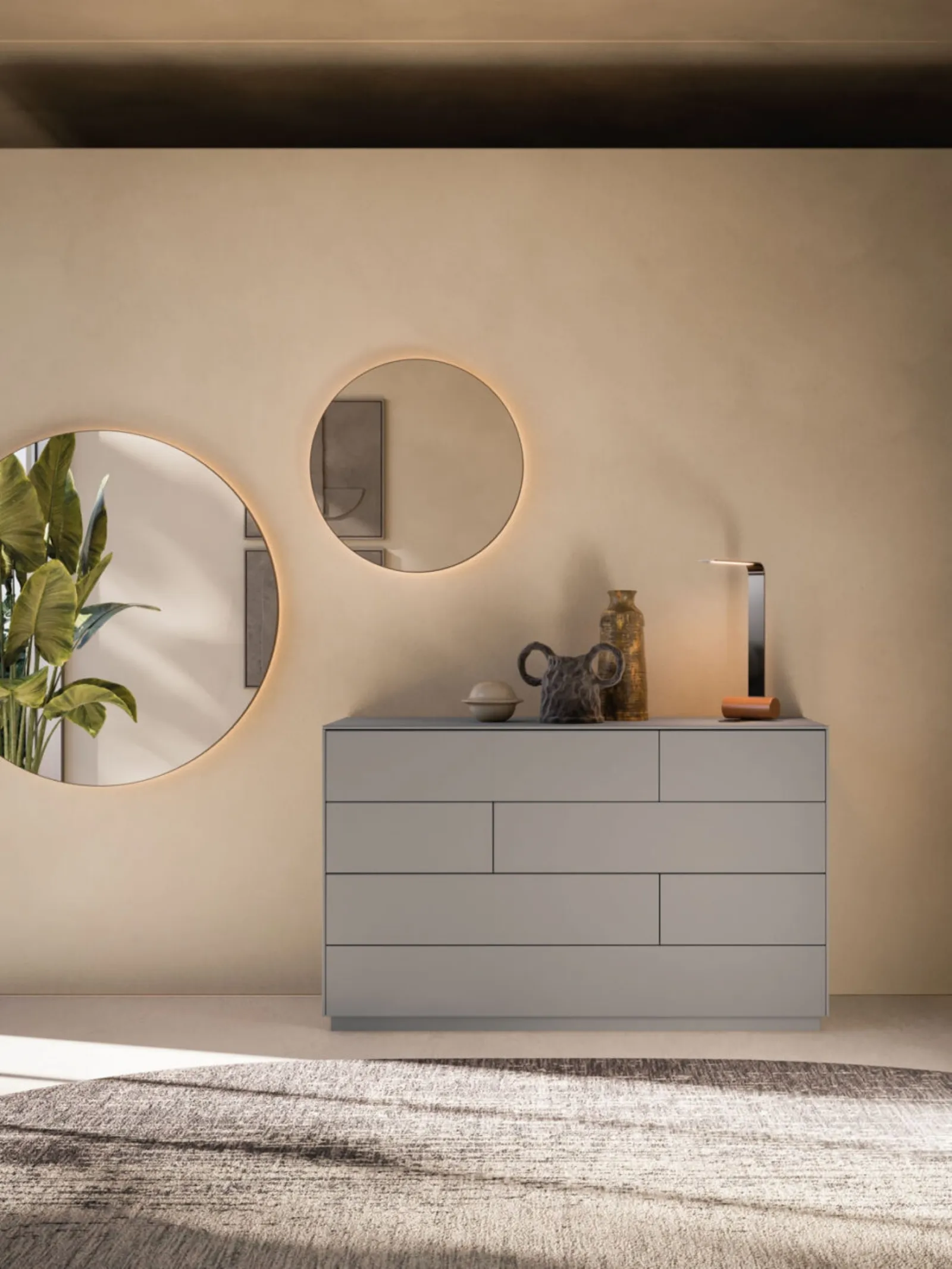 Optimize your interiors by choosing coordinated compositions of objects or create elegant combinations of style and tones thanks to the furniture and accessories catalog for the sleeping area that we offer, such as the melamine model visible in the photo, also customizable. The sleeping area also includes bedside tables: strategic storage furniture that allow you to organize small items and rely on surfaces for various uses. Soul chest of drawers by Orme: contact us and find out more about our compositions and furnish the room as you've always dreamed of.