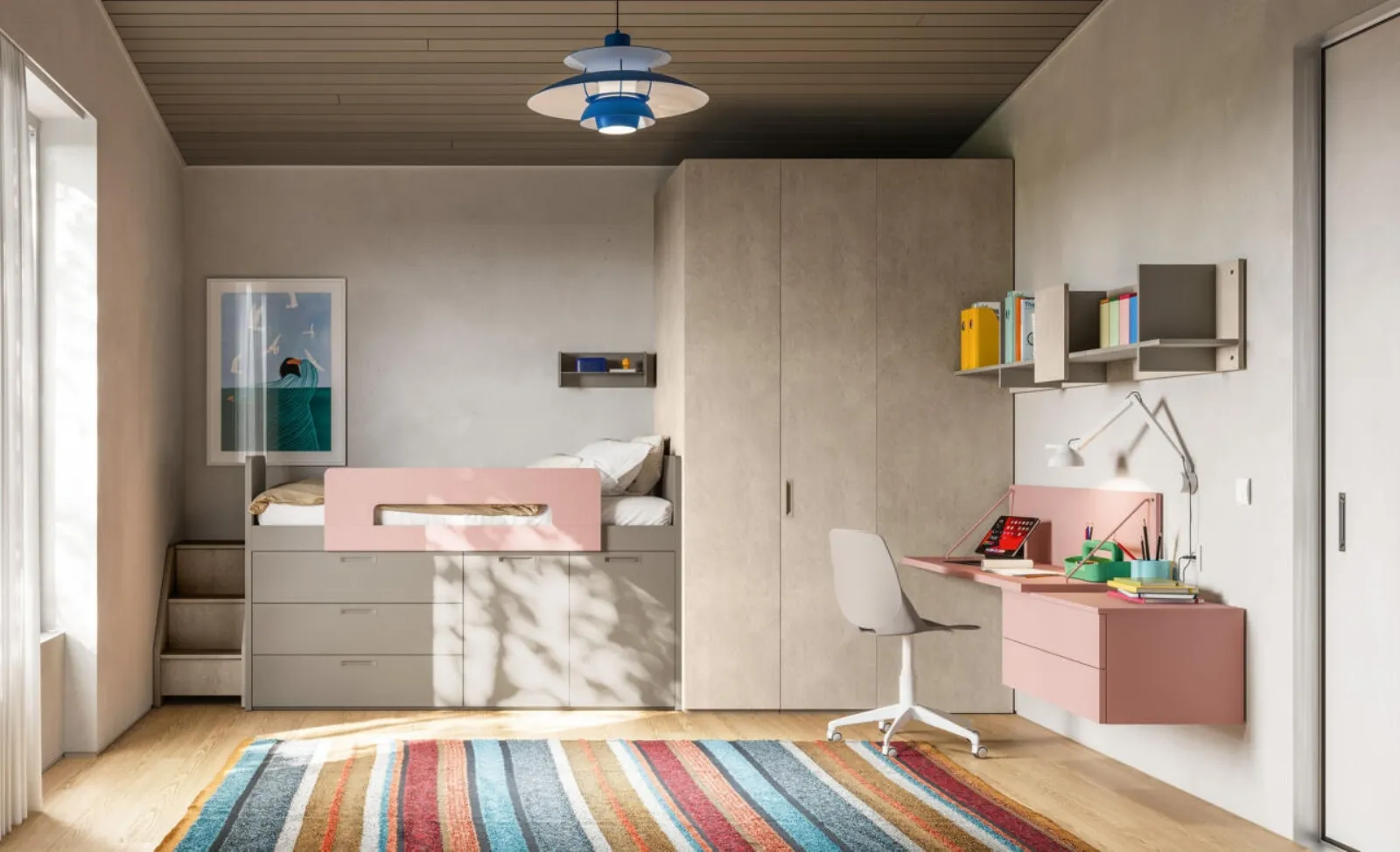 Discover in store the Space-saving Room 49 by Mistral in melamine: it is the solution to perfectly recreate a welcoming, beautiful, and well-organized environment. If the room is small, Mistral offers various solutions, always able to combine functionality and ergonomics. Quality materials and non-toxic paints distinguish the brand's proposals, including modern loft beds ideal for you. The loft beds for girls from the renowned brand are available in various versions, always meeting the needs of children.