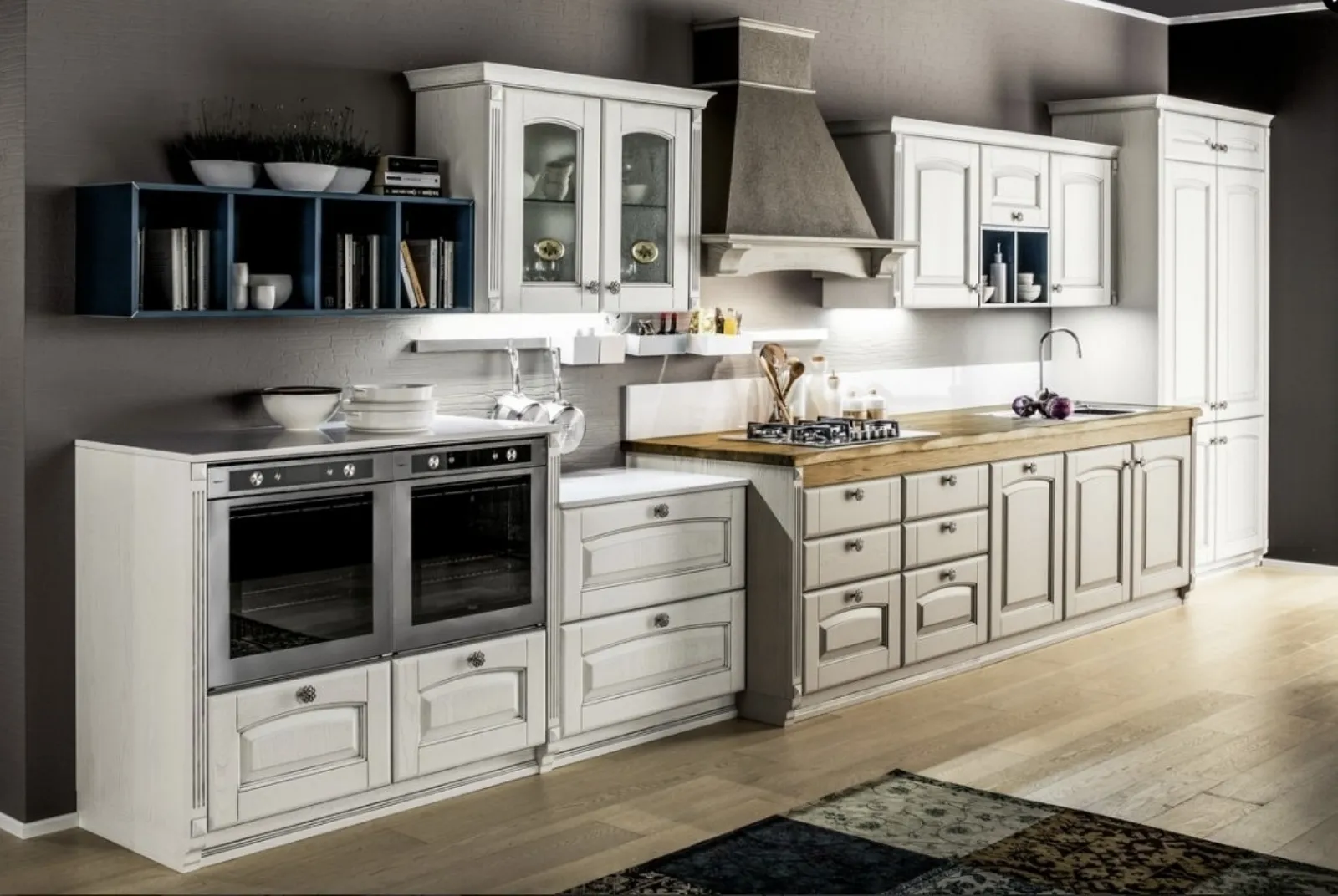 Discover a rich catalog of Classic Kitchens from the extensive Arrex catalog, available in a wide range of colors and in multiple materials, from wood to laminate to lacquered finishes. Among the company's furniture, this classic kitchen represents timeless values such as charm, intimacy, versatility, and a high degree of customizability. If you want to enrich your spaces with one of the most beautiful solutions on the market, come and see firsthand the value of the finest types of wood and the furniture proposals from the best brands: discover the linear Classic Kitchen Magda 05 by Arrex.