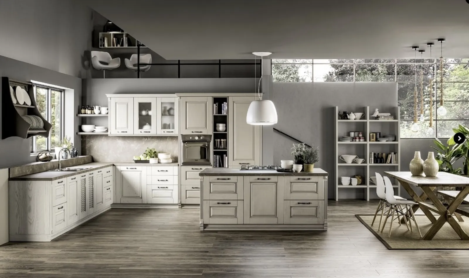 Arrex carefully studies the evolution of a constantly changing lifestyle, to create comfortable solutions always in line with the new trends in interior design but with a distinctive traditional style. Discover the Classic Kitchen with island Nora 02 by Arrex in the image: let yourself be fascinated by the sinuous lines of this wooden model. The classic island solutions available in our store stand out for their strong character and typical romantic appearance, which in this case is personal and unique.