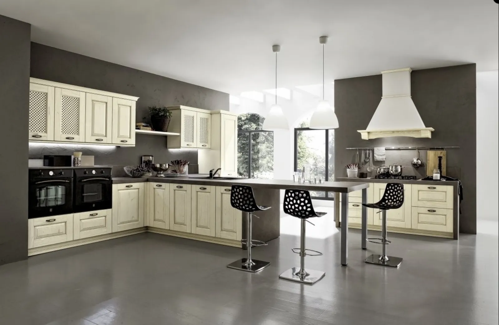 Arrex carefully studies the evolution of a constantly changing habitus vivendi, in order to create comfortable solutions always in line with the new furniture trends but with a distinct classic style. Discover the Classic Kitchen with peninsula Nora 06 by Arrex in the photo: let yourself be fascinated by the soft shapes of this wooden model. The most original Classic Kitchens with peninsula await you to enrich the environment following the modern evolution of furniture with a timeless classic style.