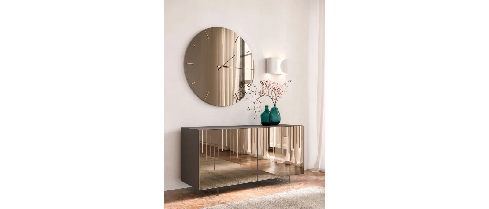 In the showroom, you can see in person all the most original compositions of the well-known brand, including those complete with modern glass watches. From the bedroom to the living room, these accessories are essential objects to best complement the practical and aesthetic qualities of the spaces. The brand Ozzio means excellence and style: visiting our store means relying on the company's many years of experience and dedication. To enhance the interior spaces to the fullest, all you need is a skilled touch by adding some quality accessories to the rest of the furniture. Style and functionality characterize the various solutions offered by the company, including this model of the Replay mirror clock by Ozzio, with a glass design that creates a great aesthetic impact.