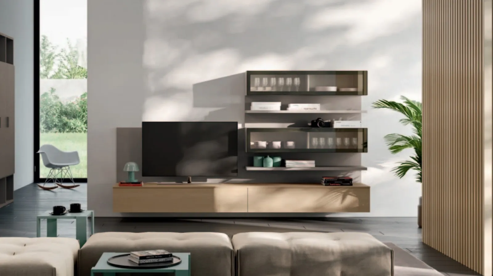 Discover our collection of living room furniture from the brand Orme and you can furnish your home with a unique style and the storage capacity you need. We are retailers of melamine Home Furnishings from the best brands: contact us and find out more! By studying the most current and personal housing issues, we only select the most beautiful and interesting furniture solutions on the market, customizable according to the most personal requests. The Day 16 Equipped Wall by Orme becomes the protagonist in rooms of all kinds thanks to its modular elements and the possibility to select textures, materials, tones, configurations, and much more.