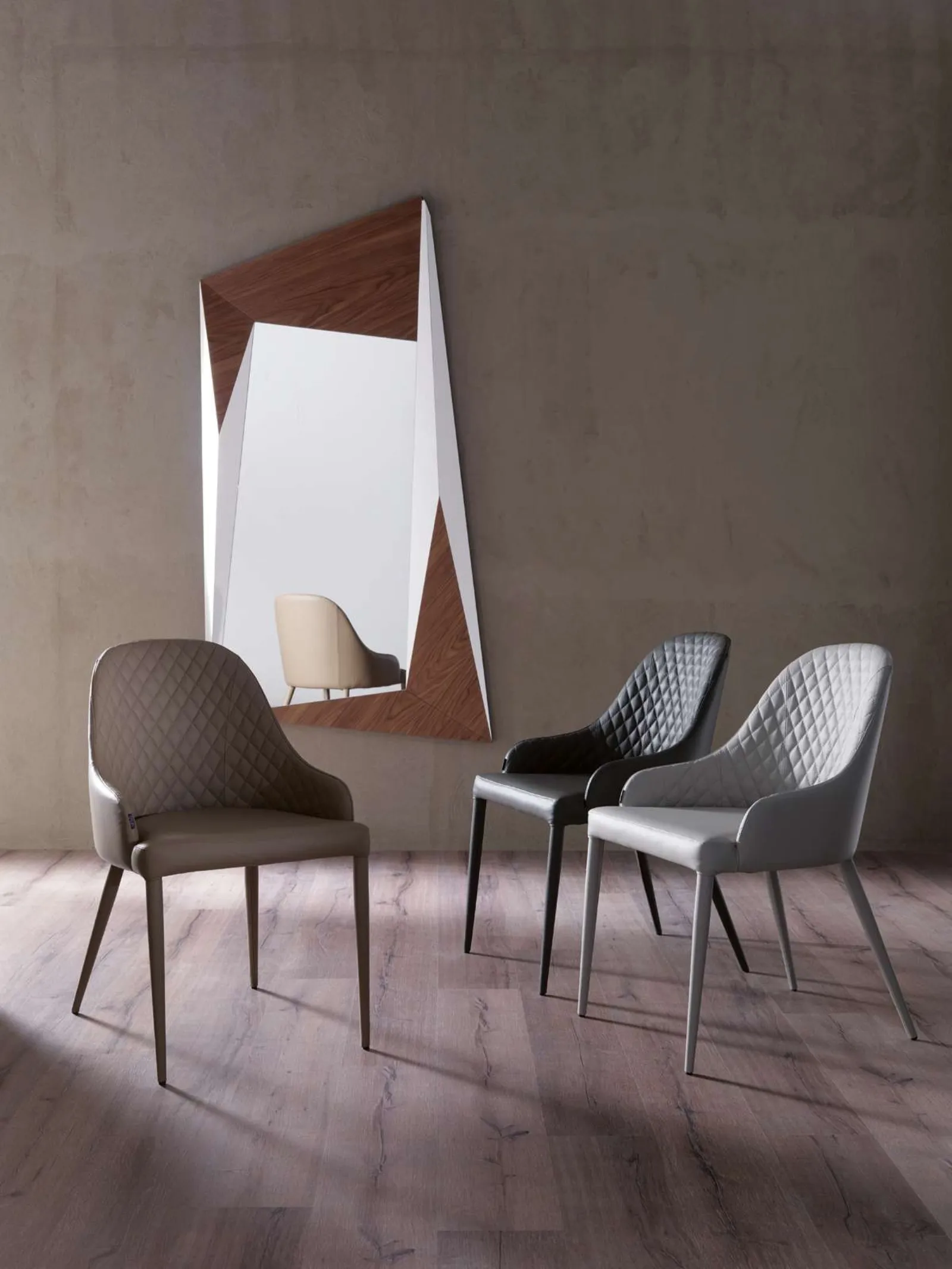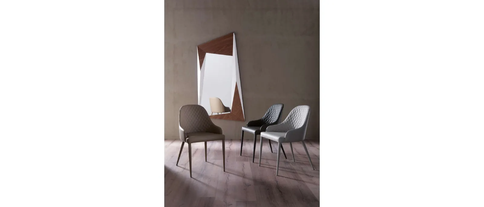 A leather chair like the one present here can furnish a living room or a kitchen with high aesthetic content, enhancing the spaces and enriching their aesthetics. In our showroom, we offer exclusive furniture and accessories, among which you will certainly find the solution that suits you best. Modern seats, both in wood and upholstered, are complex furnishings characterized by an almost infinite range of colors, shapes, and patterns. Among the best brands available in our Home Furnishing store, you will find the most beautiful fixed dining chairs on the market. In addition to fulfilling an essential function, these pieces of furniture are able to enhance even a monotonous and accessory-free room. Contact us to discover more about the model of the quilted leather chair "Betta" by Ozzio featured in the photo.