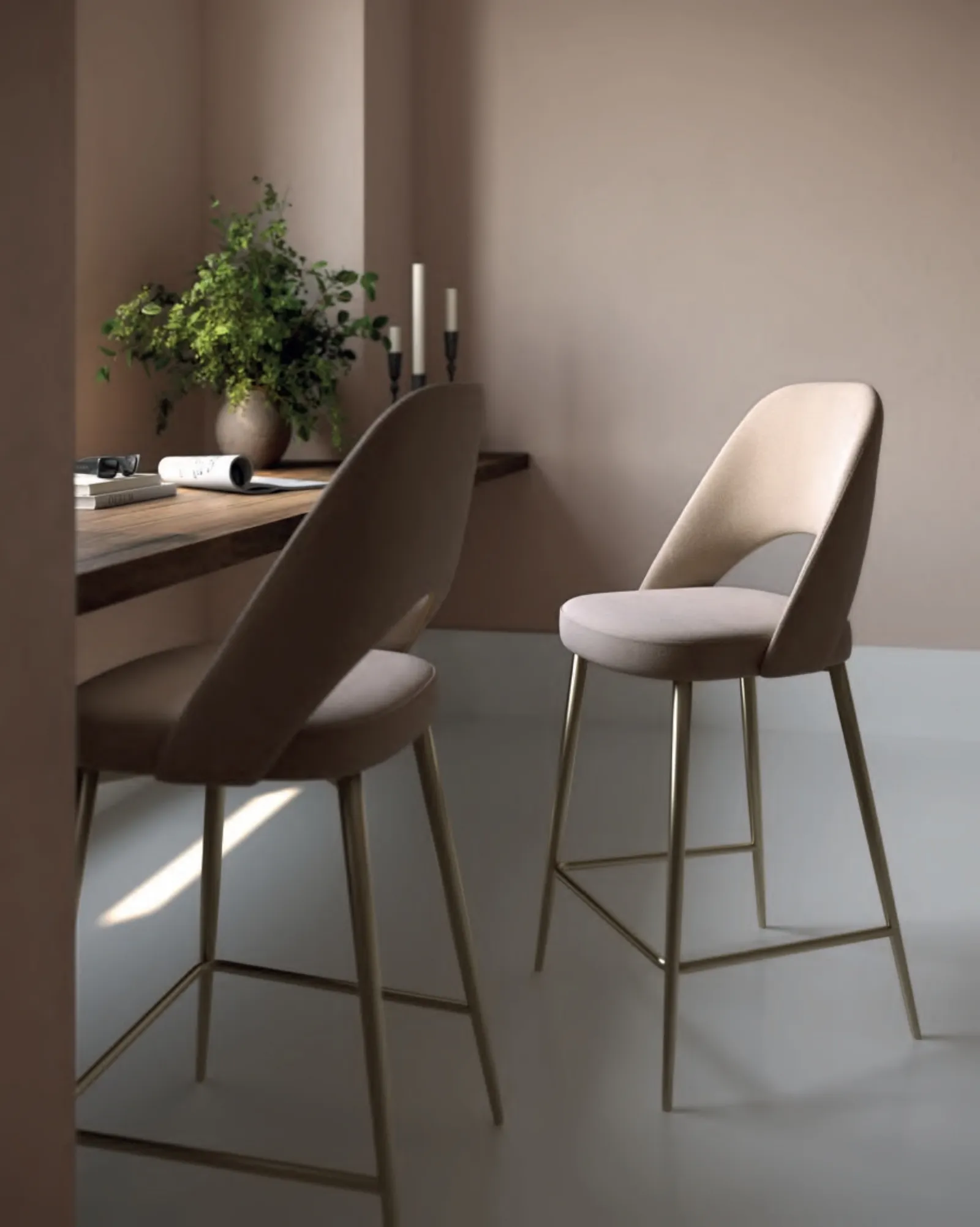 The living room and kitchen area are not really cozy and comfortable if they are furnished with the wrong chairs, that's why they should be matched with the rest of the furniture and the size of the room. In the living room or kitchen area, chairs are essential furniture items: they enhance the mood of the environment and play a crucial role. A wide range of dining stools are waiting for you in the store: contact us for information and quotes and optimize your premises with the quality that only Di Lazzaro can guarantee for furniture and accessories. If you want a fabric chair to enrich the atmosphere of your home, find out more about the model in the photo and find a matching table.
