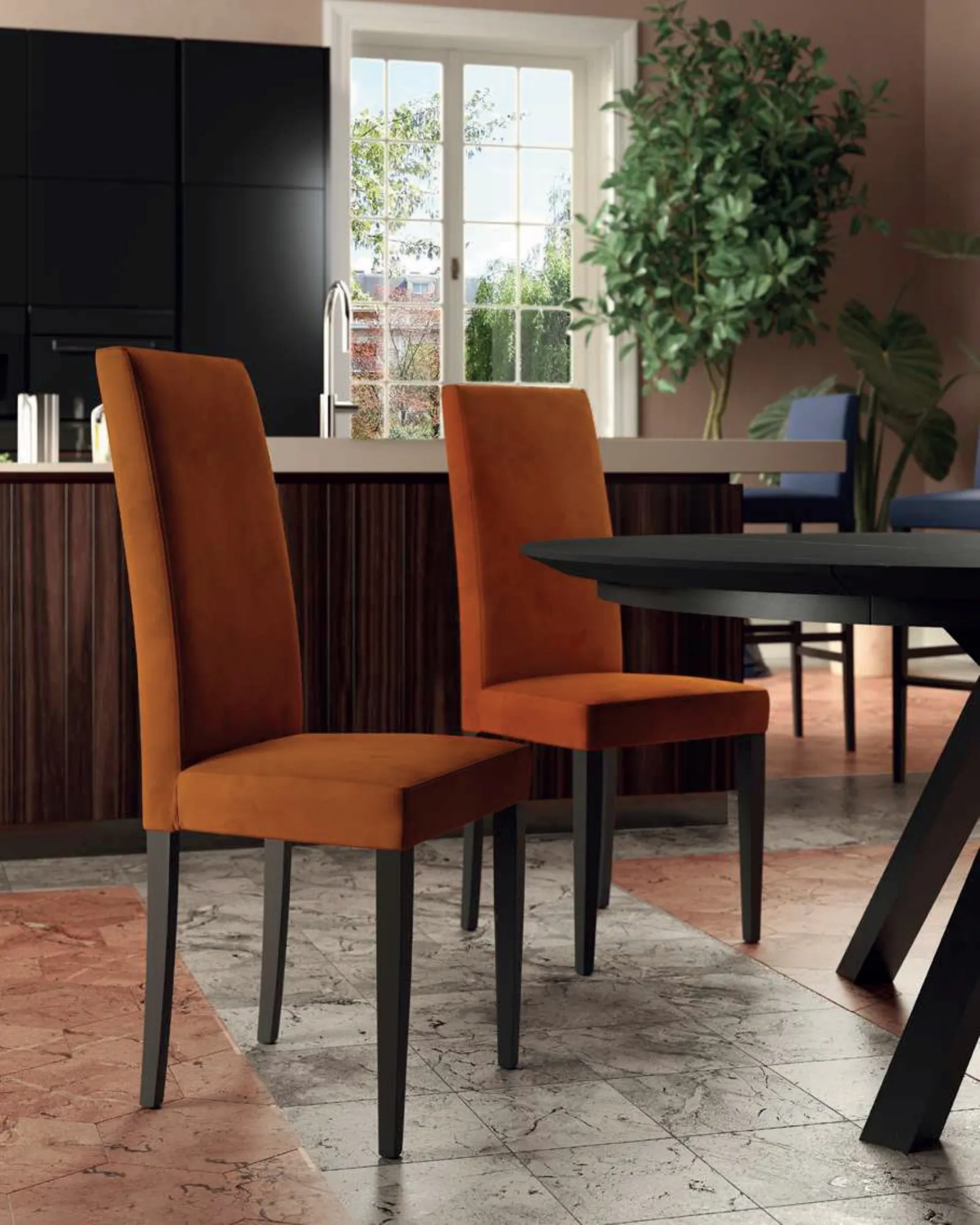 In store you can see first-hand the most beautiful proposals on the market, including the modern dining chairs signed by the well-known brand Di Lazzaro. In addition to being truly comfortable and ergonomic, this fabric chair will guarantee you total livability in the places where you are together with family and friends. Chairs are among the indispensable furniture and accessories in every home, which is why we offer a wide range of solutions in our showroom for you to choose based on your preferences. Each Di Lazzaro solution guarantees a good aesthetic result regardless of the destination room, as it organizes spaces enriching their aesthetics.