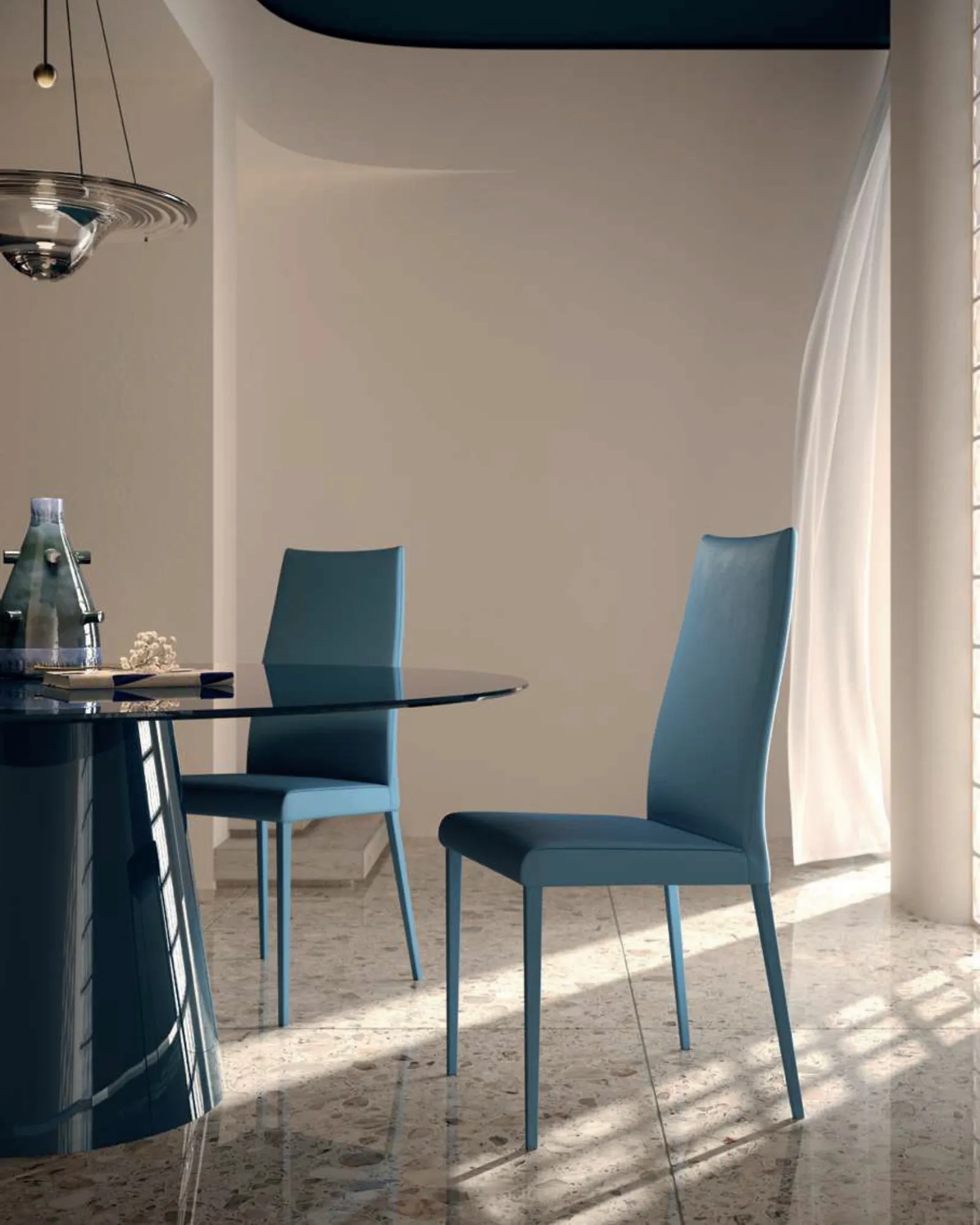 Contact us and discover more about the Nice Chair by Di Lazzaro model shown in the photo. In our showroom, we present exclusive furniture and accessories, among which you will certainly find the solution that suits you. In addition to fulfilling an essential function, these pieces of furniture can enhance even an anonymous and accessory-free interior. Among the best brands available in our Home Furnishing store, you will find the most beautiful fixed dining chairs on the market. A leather chair like the one available here decorates a living room or high-quality kitchen area, enhancing the spaces and enriching their aesthetics.