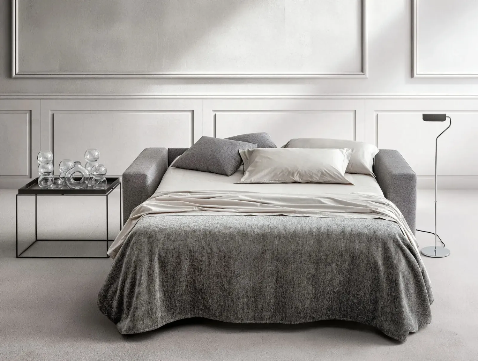 Axel Sofa Bed by Samoa: let yourself be tempted by our offers of modern sofas and armchairs that can guarantee comfort, practicality, and design in your living room. The living room is the center of every home's living area, and upholstered furniture are the furnishing elements around which to spend moments of relaxation and socialization. Samoa, a specialist in the creation of sofas, has created a sophisticated and elegant fabric covering for the model in the image. Discover a multitude of sofa beds from the best brands and enhance the living area you have always desired.