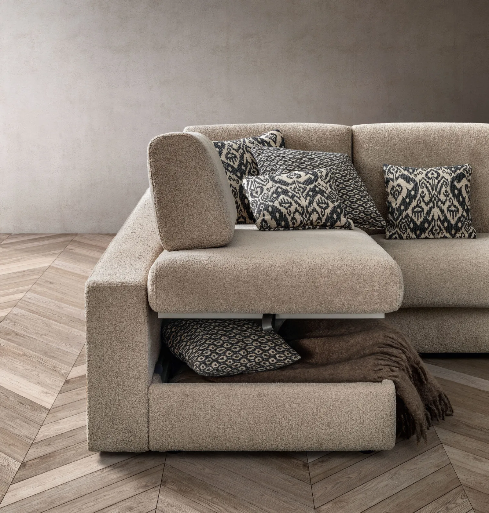 The sofa series of the brand in question offers several original ideas for furnishing the living room with functionality, comfort, and style. Cliff Sofa Bed by Samoa: recreates a familiar and comfortable space in modern spaces with refined aesthetics. If you're looking for sofas and armchairs with a bed like the model in the picture, characterized by inviting volumes that will help you enjoy your moments of relaxation. Our Living rooms are designed to be combined with all kinds of accessories, such as coffee tables, lamps and floor lamps, or in combination with additional fabric sofas.