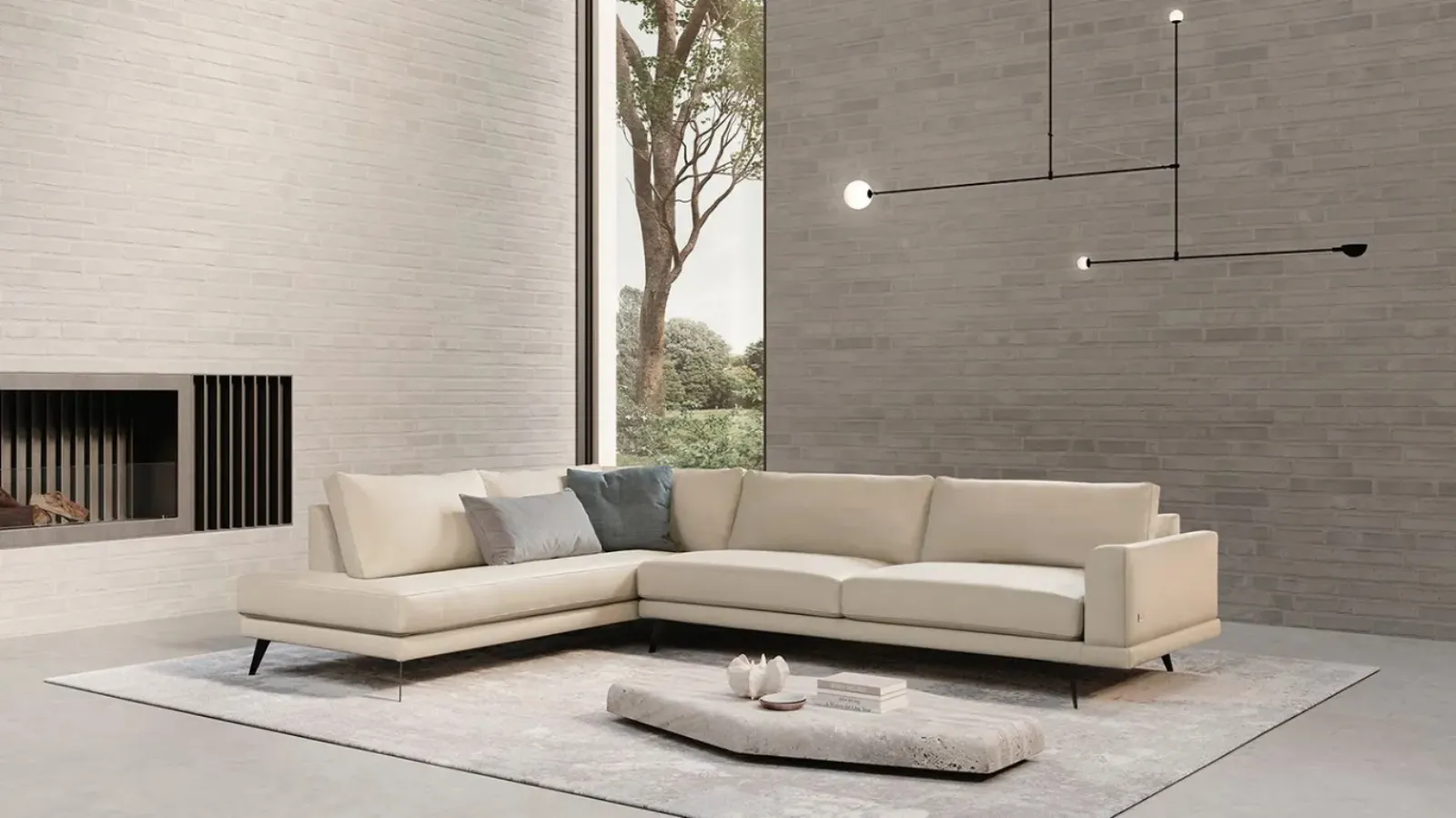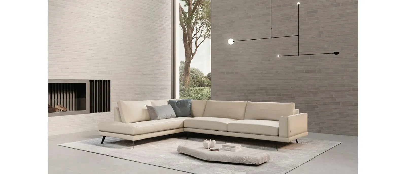 Discover our line of modern living rooms: choose Doimo Salotti corner sofas such as the Philip 77 model