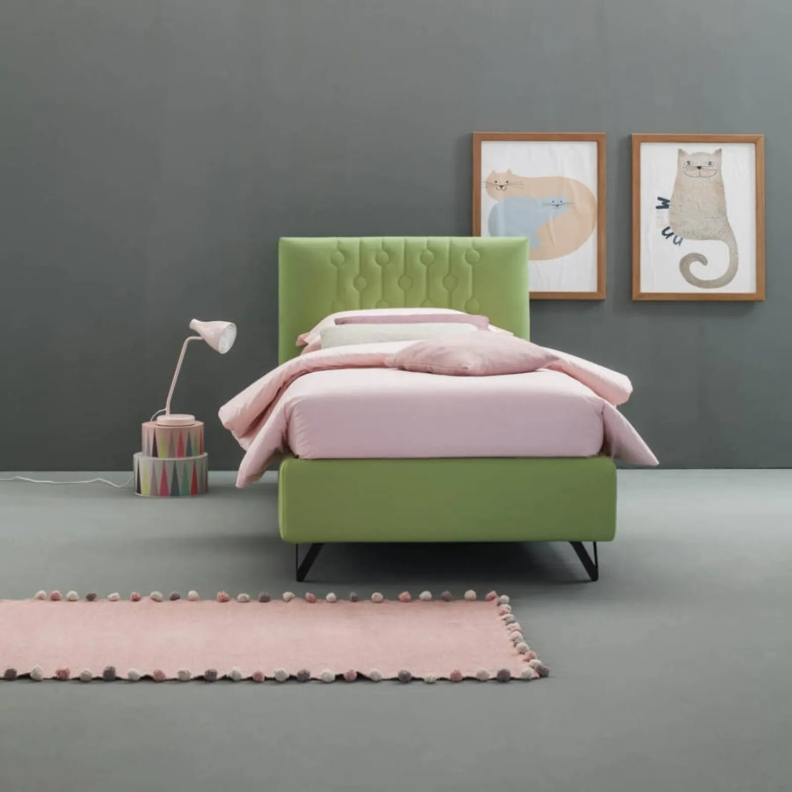 Do you need a single Bside bed to complete the kids' room? Introducing the modern Loop Bed by Bside, part of our upholstered bed series from the brand. Get information about the fabric model in the photo: contact us for any inquiries by filling out the form below. It is essential for the children's room to include every piece of furniture to ensure an ideal interior for children, where we will place modern beds like this one.