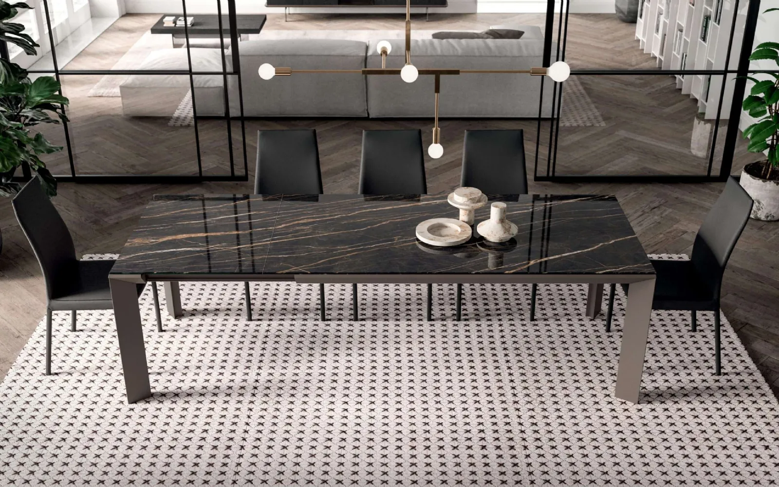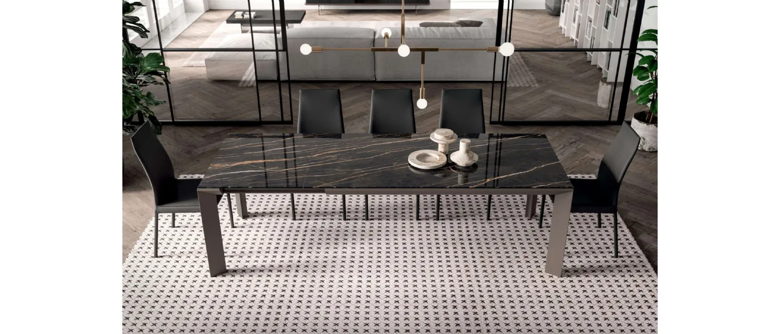 This ceramic proposal warms the home environment thanks to original qualities of charm, optimizing spaces to perfection and fully enhancing them. In the living room or in the kitchen, the tables are important elements that characterize the style of the environment by playing a truly fundamental role. The Metrò table by Ozzio, in combination with the chairs, embellishes the mood of the rooms of the house dedicated to socializing. The dining model shown in the photo belongs to our wide range of modern extendable tables by Ozzio, always made of quality and resistant materials. In our showroom you will be able to see live the most beautiful proposals of the well-known brand, the result of passion in the field of furniture and attention to style. For meals around the table, for parties as well as simply to talk to friends and relatives, it will be essential to have a good model of table at home.