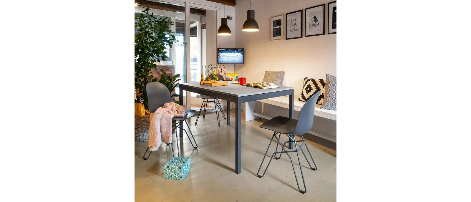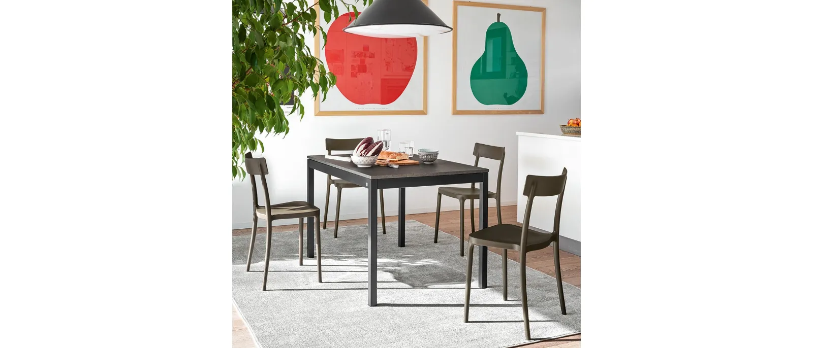 Extendable melamine models like the one shown in the photo adapt to a variety of spaces and living environments, being truly versatile and durable. Tables are furnishings that can enhance the living room, kitchen area, or other rooms in the house, thanks to high-quality materials and imaginative color combinations. Fill out the form and contact us to discover the best brands of home furnishings, coffee tables, and chairs under the Connubia brand. Tables are essential pieces of furniture in every home: complete your furnishing concept and bring to life the house you have always dreamed of.