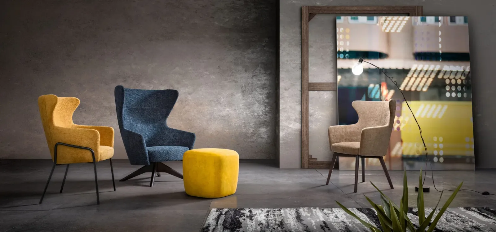 Samoa, a specialist in the production of armchairs and fabric sofas like the model in the photograph. Upholstered furniture are furnishing modules around which to spend moments of rest and socialization. Wendy armchairs by Samoa: let yourself be fascinated by our modern proposals. Armchairs are a truly essential design element in various rooms, from the living room to the bedroom, spaces to be decorated with care.